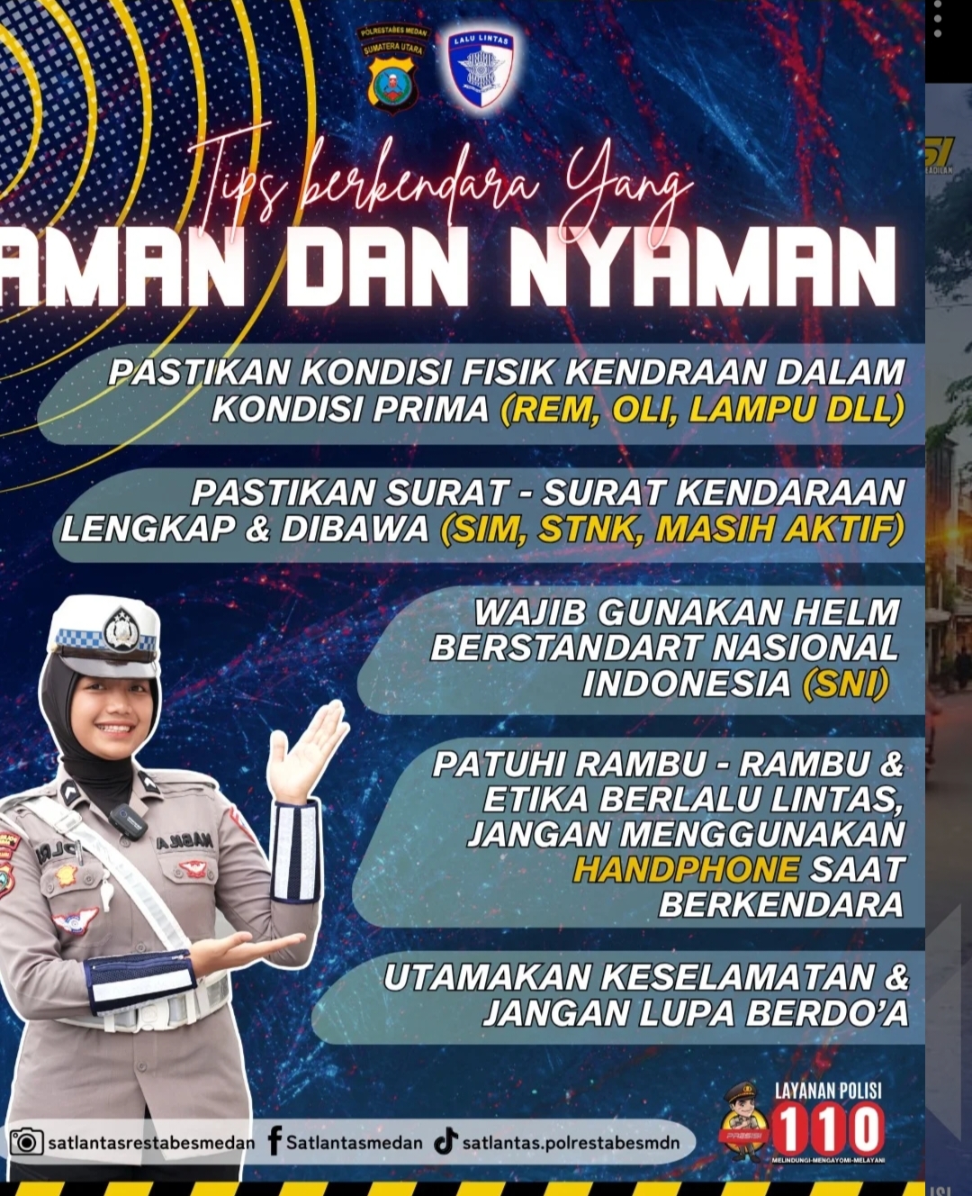 Himbauan ini disampaikan ke seluruh masyarakat pengguna jalanan Kota Medan melalui akun Instagram resmi milik satlantas Polrestabes Medan (01/08/2025).